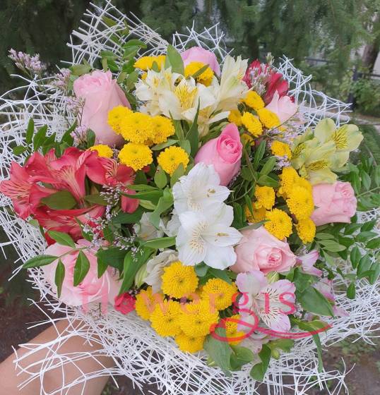 Каждый цветок в композиции «Летнее чудо» символизирует что-то свое, вызывая приятные ассоциации с теплыми деньками, отдыхом, приятно проведенным временем. В жизни каждой женщины, есть место для чуда, а букет с нежными бутонами роз, трогательными фрезиями, яркими хризантемами будет тому подтверждением. Изюминкой оформления стильного микса служит белоснежная декоративная сетка, которая делает его особенным, стильным и неповторимым.