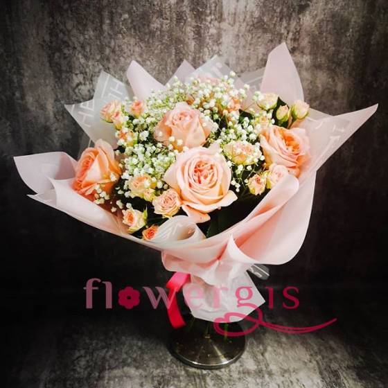 Истинную нежность и наслаждение, вы найдете в этом букете, без резких цветов, все в постельно - нежных цветах. Отлично подойдет, кому не хватает нежности в данный период.